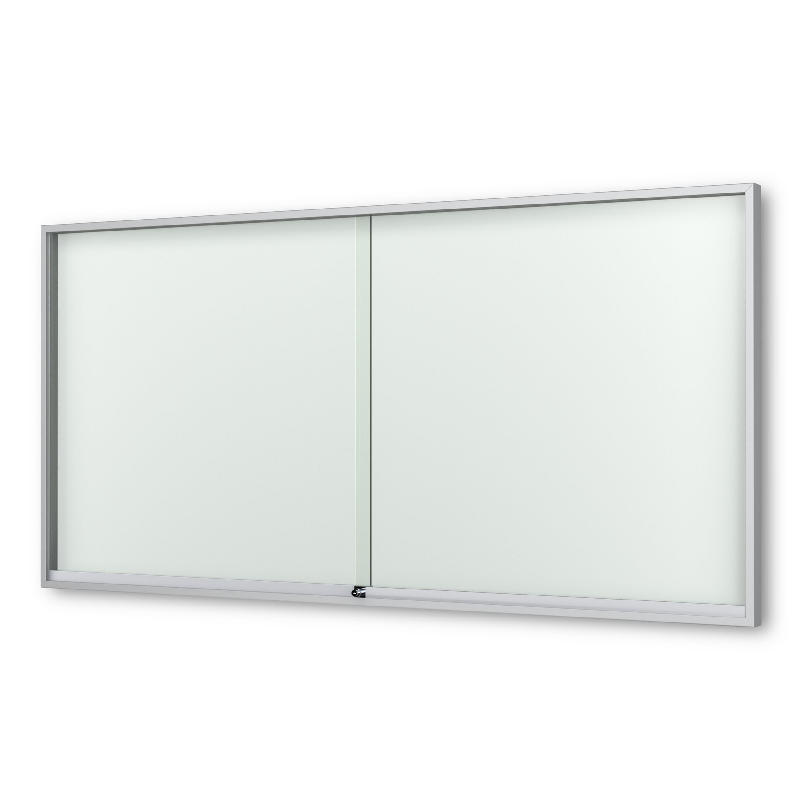 Schaukasten Fortis - eckig - mit Schiebetüren -210 mm Gehäusetiefe, rollengelagerte Schiebetüren, höchster Brandschutz (A1) Größe - 27 × DIN A4 • 2050 × 1020 mmSichtfläche: 1990 x 950 mm Öffnung - rollengelagerte SchiebetürenVerglasung - Einscheiben-Sicherheitsglas / ESGOberfläche - Eloxierung in matt-silber (E6/EV1)Beleuchtung - ohne BeleuchtungSchließung - Sicherheitsschlösser mit je 2 SchlüsselnRückwand - weiße, magnethaftende Rückwand inkl. 10 Magnete