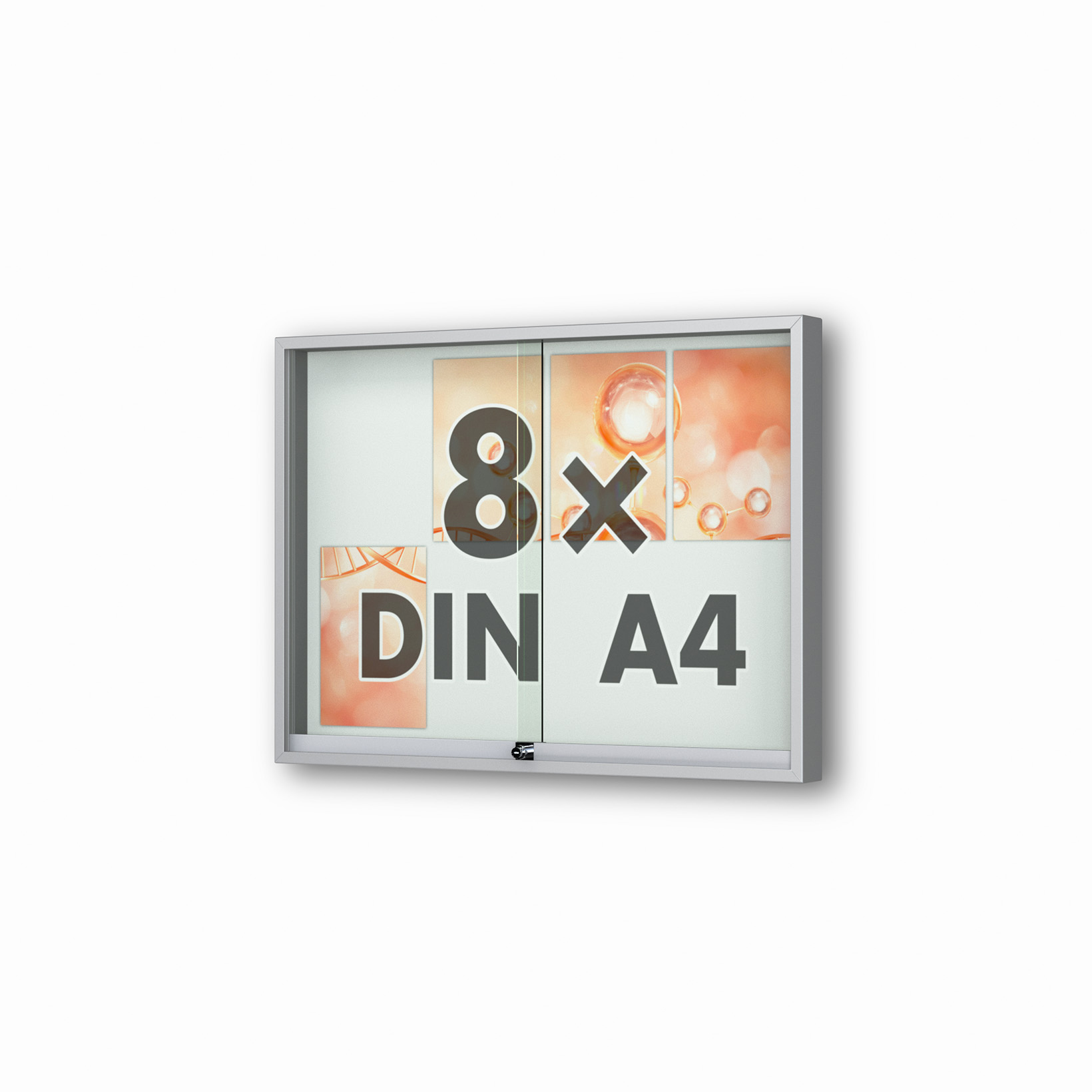 8 x DIN A4 Schaukasten Fortis mit Schiebetüren - 80 mm Bautiefe